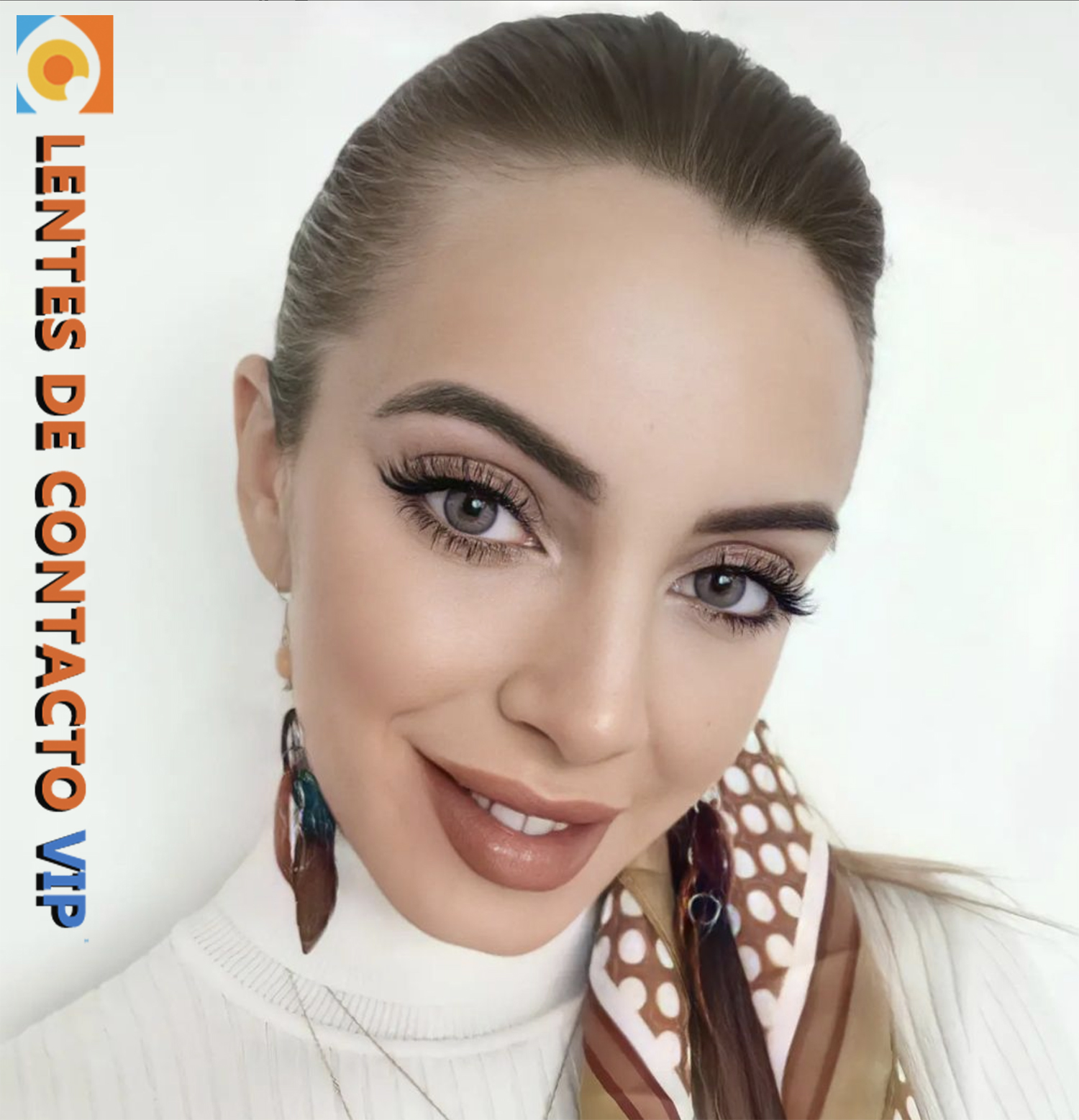 Lentes de contacto de color gris, con diseño super natural. Madrid VIP, colección España: Lentes de contacto con aro de definición, que agrandan visualmente el ojo, similares a Solótica Natural Colors. Diámetro: 14,2 mm. Lentes de contacto cosméticos, sin graduación. Duración: 12 meses. Envío gratis a toda Argentina.